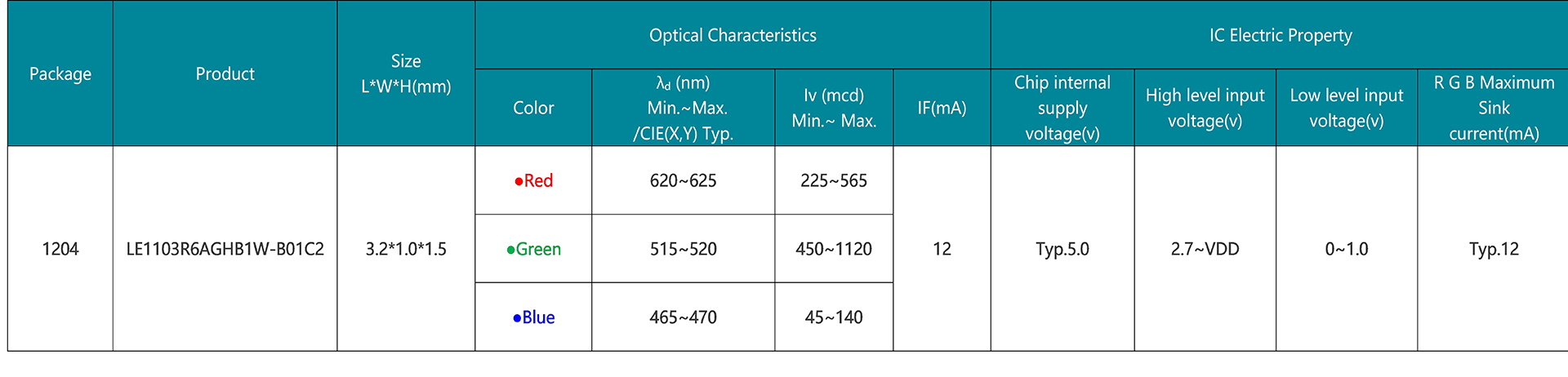 CHIP LED封裝的側(cè)射型1204內(nèi)置IC幻彩產(chǎn)品
