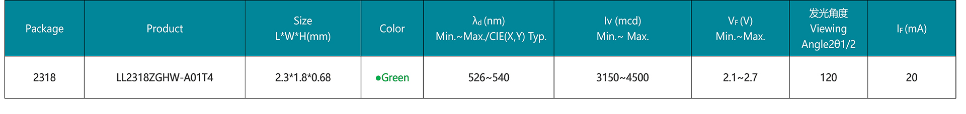 CHIP LED封裝的2318正貼綠光產品高