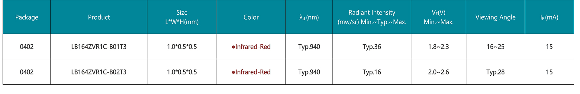 CHIP LED封裝的0402正貼紅外產品,產品超薄且小尺寸靈活性更高