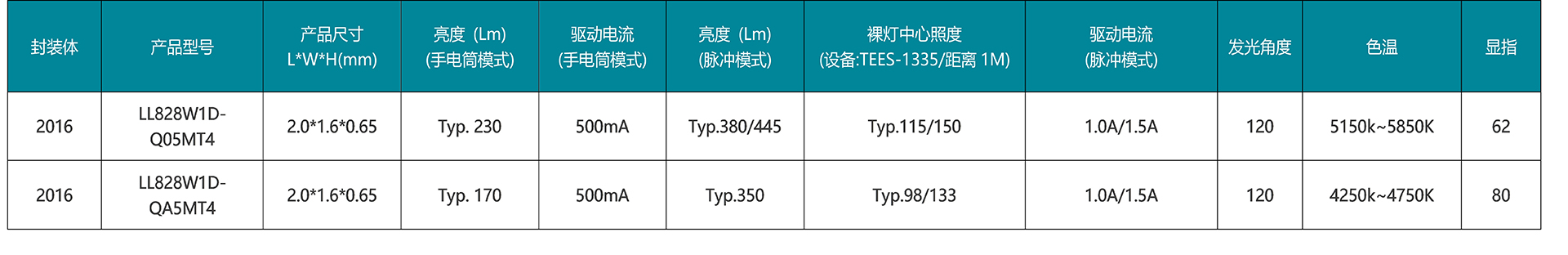 2016系列是倒裝封裝支架式閃光燈