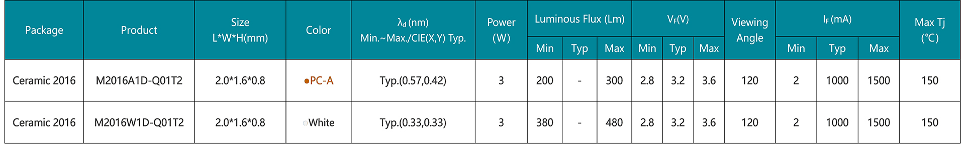 2016系列產品使用微型化的緊湊封裝體,載體使用更好的導熱系數的陶瓷材料,可以適用在車用零部件PCB中更高的耐壓及沖擊能力,低熱形變能力更能使用車用復雜的設計環境
