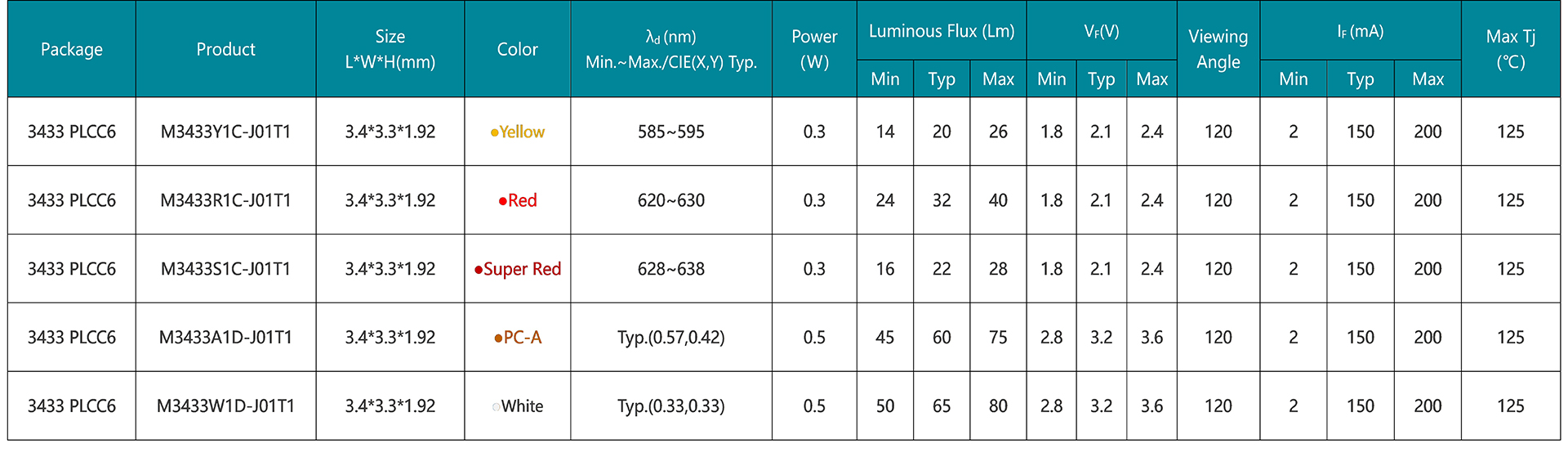 3433系列采用大面積銅基底結(jié)合PLCC 封裝結(jié)構(gòu)保證了產(chǎn)品的氣密及密封性,并能承載大尺寸芯片滿足汽車外飾應(yīng)用需求的高亮度及效率,符合汽車產(chǎn)品標(biāo)準(zhǔn)